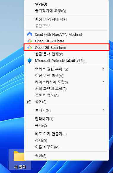 1. 새 파일을 만들고 git bash에 git init을 입력 한다.
